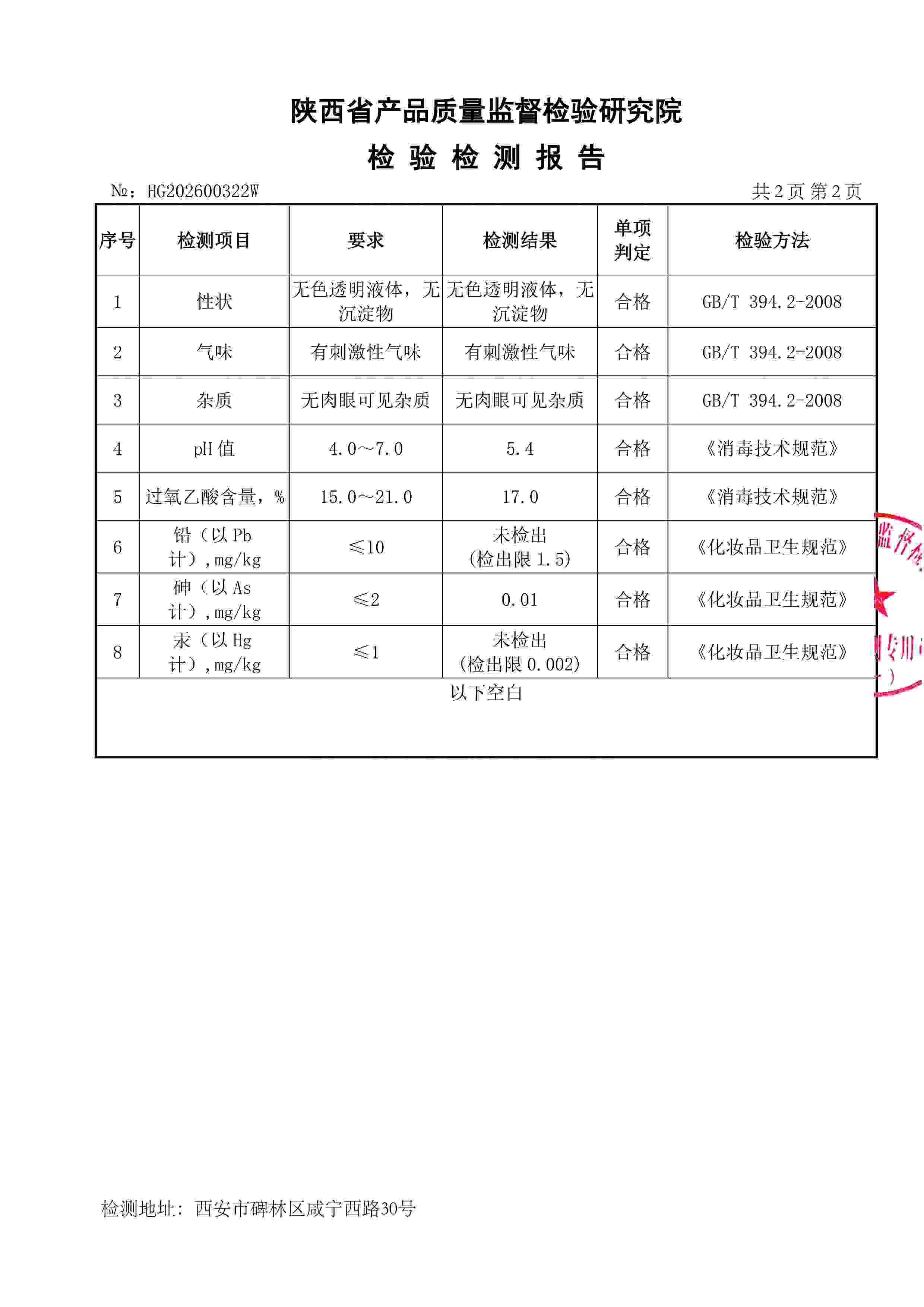 過(guò)氧乙酸消毒液檢測(cè)報(bào)告(2026年度)
